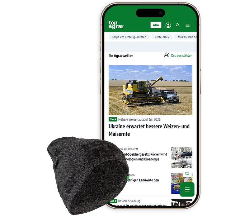 *Falls Du top agrar nicht weiterlesen möchtest, sende bitte innerhalb von 14 Tagen nach Erhalt der letzten Ausgabe eine Mitteilung an top agrar Leserservice, 48084 Münster. Die Lieferung wird dann sofort und ohne weitere Verpflichtung eingestellt. Oder Du liest top agrar ohne Risiko weiter und kannst Dein Abonnement jederzeit kündigen. Zu viel bezahlte Beträge erhältst Du zurück. Die Jahresbezugspreise 2025 (Inland): top agrar Print + Digital Basis 159,60 EUR, mit dem Spezialprogramm Rind oder Schwein 169,80 EUR, mit beiden Spezialprogrammen 179,40 EUR. top agrar Digital 139,80 EUR. Preise inkl. Versandkosten und MwSt. Auslandspreise auf Anfrage.