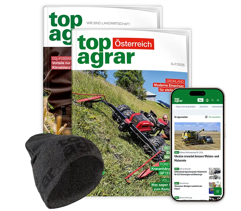 **Falls Du top agrar nicht weiterlesen möchtest, sende bitte innerhalb von 14 Tagen nach Erhalt der letzten Ausgabe eine Mitteilung an top agrar Leserservice, 48084 Münster. Die Lieferung wird dann sofort und ohne weitere Verpflichtung eingestellt. Oder Du liest top agrar ohne Risiko weiter und kannst Dein Abonnement jederzeit kündigen. Zu viel bezahlte Beträge erhältst Du zurück. Die  Jahresbezugspreise 2025 (Inland): top agrar Print + Digital Basis 159,60 EUR, mit dem Spezialprogramm Rind oder Schwein 169,80 EUR, mit beiden Spezialprogrammen 179,40 EUR. top agrar Digital 139,80 EUR. Preise inkl. Versandkosten und MwSt. Auslandspreise auf Anfrage.