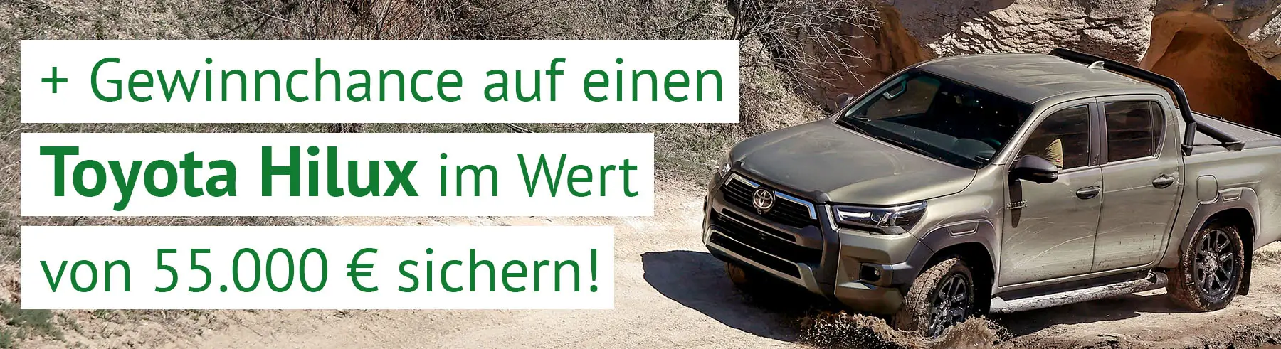 Bis zu 70 % sparen und Toyota Hilux gewinnen: